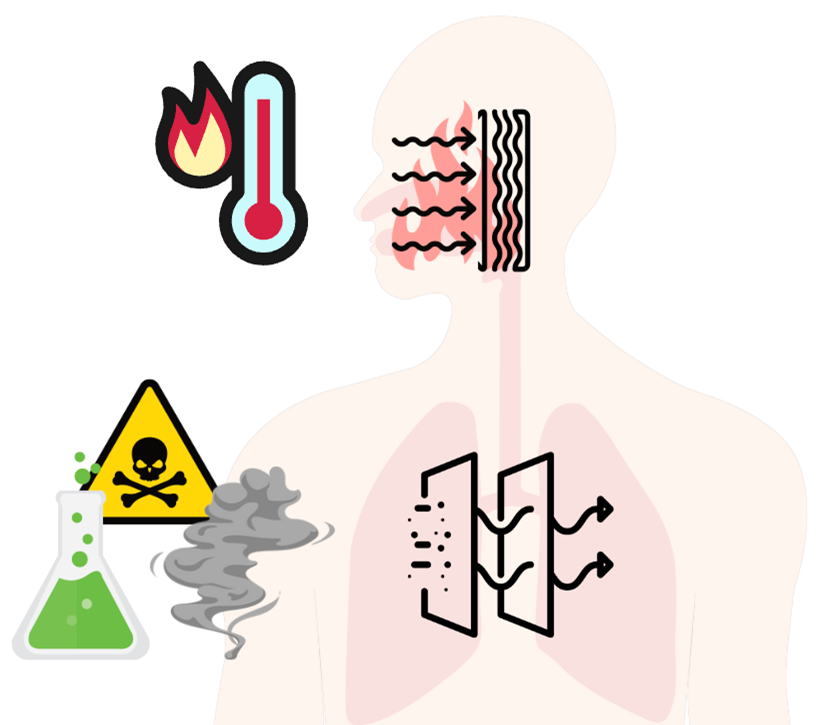 Depending on the makeup and breakdown of what was inhaled, you can have further problems such as alveolar dysfunction chemical toxicity can damage the alveoli and creates dysfunction where they lose their balloon like affect by breaking down the elastin that gives them the “elastic-balloon” ability.