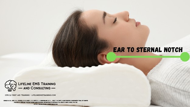 So, some basic geometry for aligning the ear with the sternal notch can optimize low resistance, allowing better ventilation for the patient. This is how any patient you manage without a cervical spine injury should be positioned.