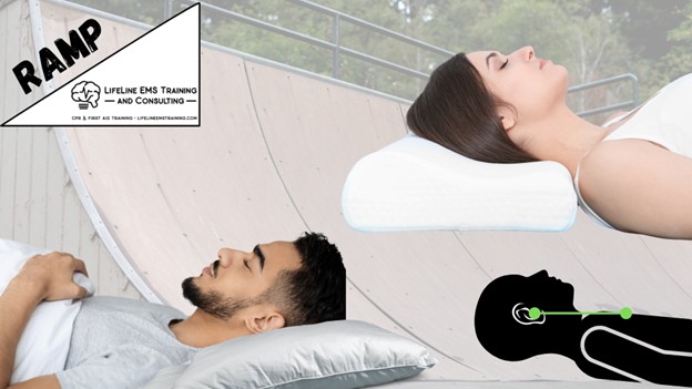 So, why do we put pillows under our heads when we fall asleep at night? We do that because it helps align our airway, reducing resistance to breathing. Because when we go to bed at night, our parasympathetic system kicks in, reducing our respiratory rate, tidal volume, and metabolism.